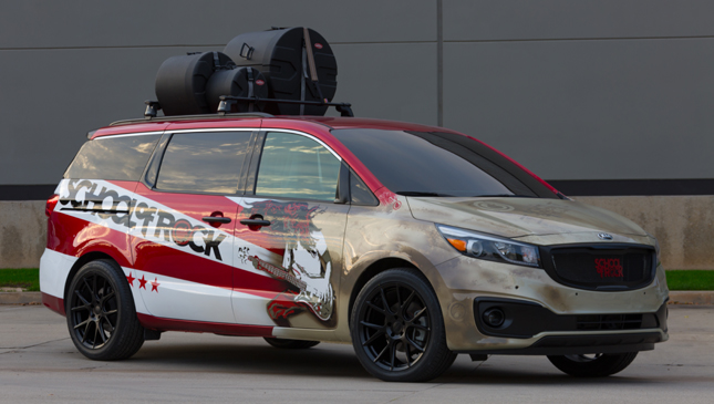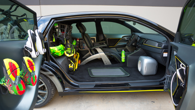 The most unique of the company's 2016 SEMA entries has to be the School of Rock Sedona. Here, Kia turned a run-of-the-mill minivan into a recording studio on wheels. The setup is made possible via a digital mixing board with dual monitors, a ton of speakers, and even recording lights and boom mics hanging from the ceiling. The interior is lined with studio-quality acoustic foam panels for recording purposes, but the vehicle's lift gate flips open in case the band decides it wants to rock out in front of an audience.