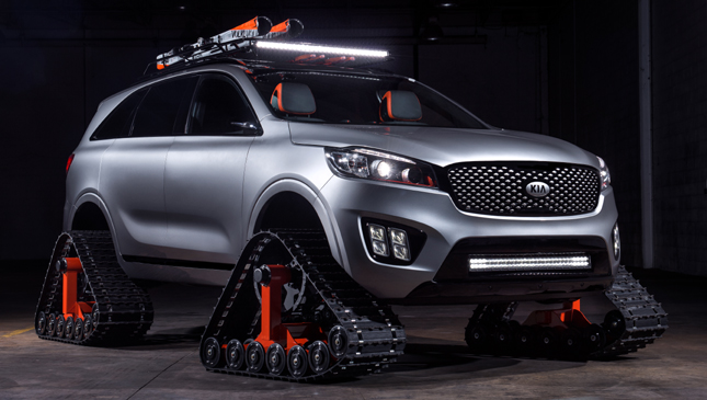 This year, Kia is fielding five unique concept cars with completely different themes and target markets ranging from adventurers and rock stars to triathletes and businessmen. The most extreme project of the bunch is the Sorento Ski Gondola. In the company's words, the one-of-a-kind vehicle is designed to take SUVs to new heights, both literally and figuratively. Dominator rubber tracks allow it to tackle cold climates and snowy terrain with a LED light bar illuminating its path. Oh yeah, it's self-driving, too.