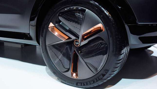The EV concept features what Kia calls the "next-generation electric vehicle powertrain," which consists of a 150kw (201hp) motor and a high-capacity 64 kWh lithium-polymer battery pack. It's expected to have a driving range of 383km. For comparison, the Kia Soul EV has a range of up to 212km.