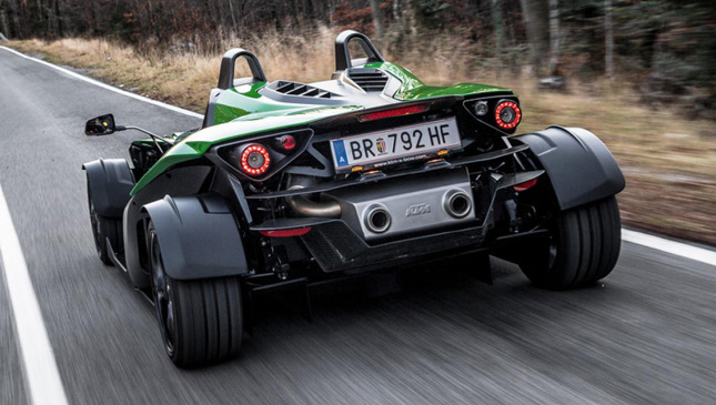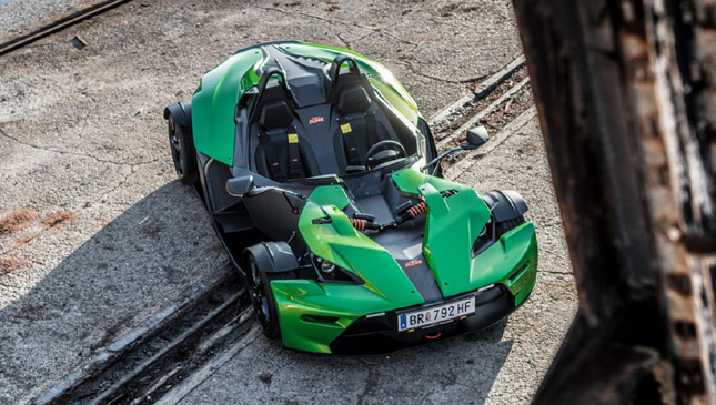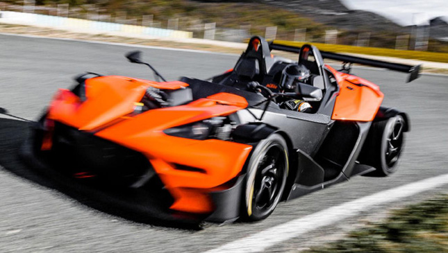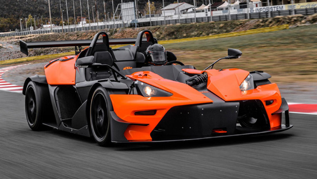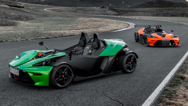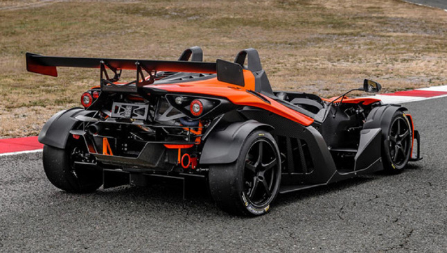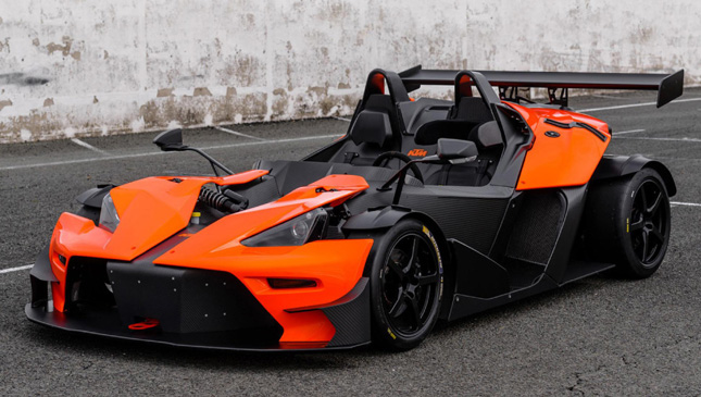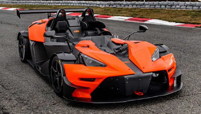Say hello to two newly face-lifted breeds of the KTM X-Bow—the pretty hardcore X-Bow R, and the really hardcore X-Bow RR. You can tell the two Tic-Tac colored cars apart thanks to the RR having a new, massive rear wing…plus many other little wings.