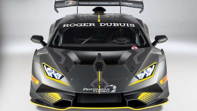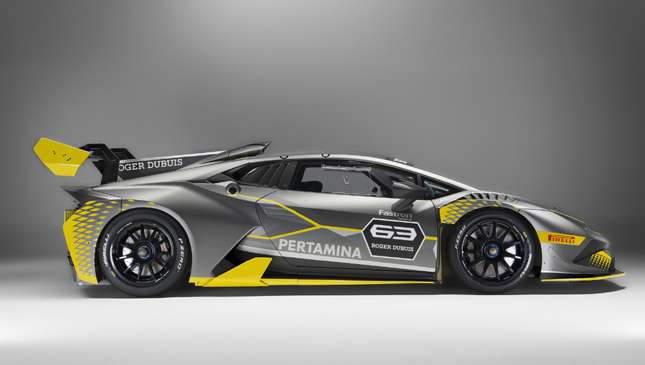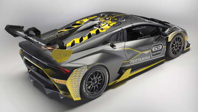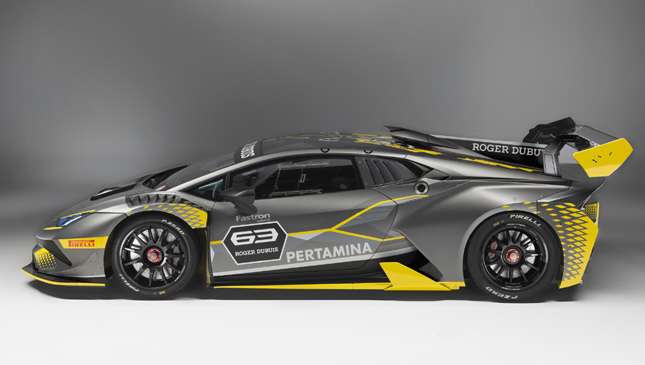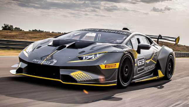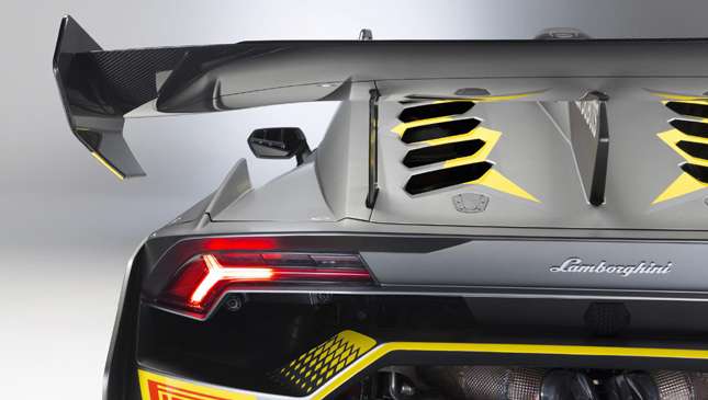 Very little is shared with the Super Trofeo it replaces, with an all-new look at the rear featuring much sculpturing. The wing and the roof fin are the headline acts, though. The latter incorporates an air scoop, so while the 5.2-liter V10 engine beneath the rear deck produces the same 611hp as before, it ought to function better with more air being lobbed its way. The fin itself aids rear stability. So maybe this Lambo won't tear your head off, after all.
