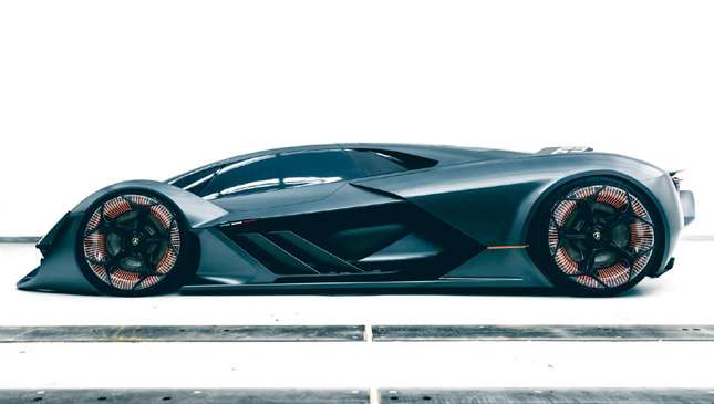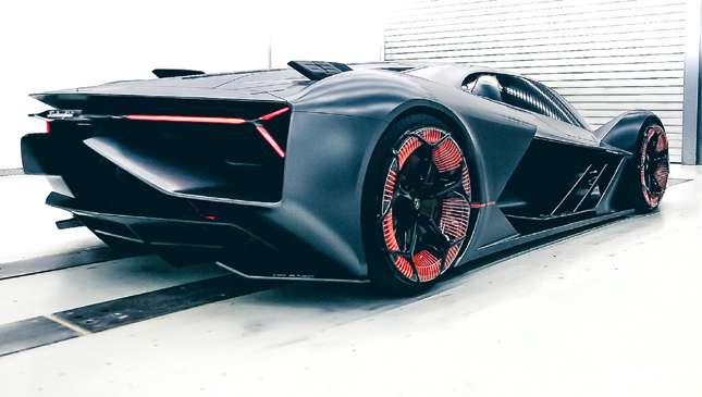 Whatever form this supercapacitor power comes from, it'll be allied to a four-wheel-drive, four-motor setup, with a motor in each wheel. This, says Lamborghini, allows for lots of torque and moving energy by wire. Not only that, but putting motors in wheels means "freedom for designers and aerodynamicists."