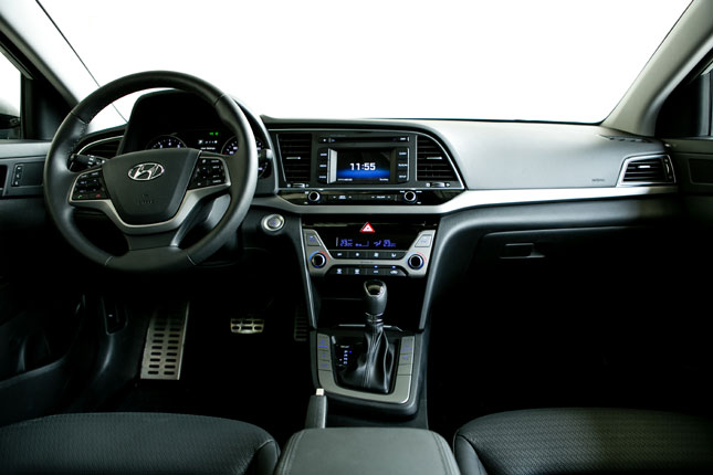 Eschewing the flowing forms of the previous model, the new Elantra follows the more restrained Fluidic Sculpture 2.0 aesthetic pioneered by the Sonata. This means a big and hexagonal grille, sleek LED-rimmed headlights, and smooth, austere lines in place of the ornate curves of the outgoing version. The menacing, shark-like nose is its best feature, giving the car a purposefully muscular look. Out back, attractive taillights sit under a new ducktail extension that, along with new underbody panels, helps the car achieve an impressive 0.27 drag coefficient.