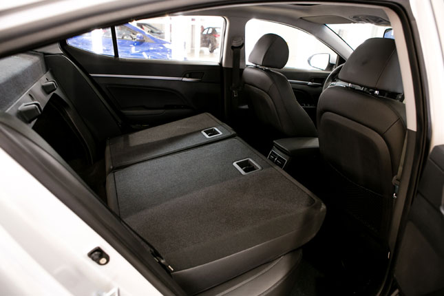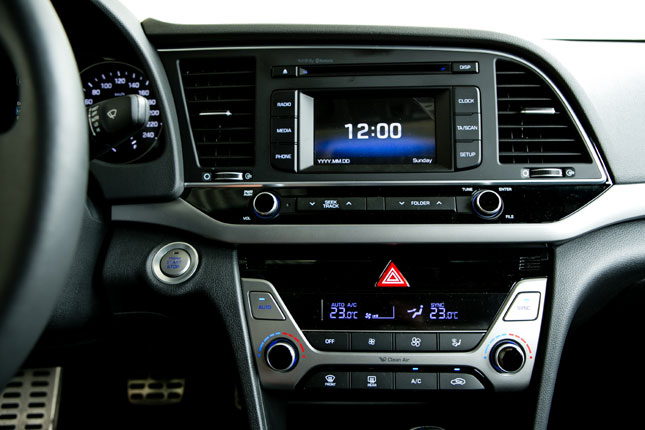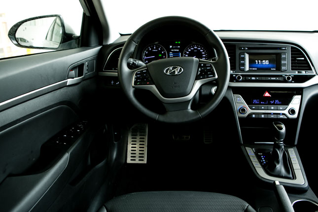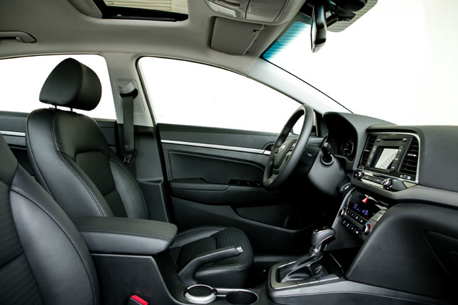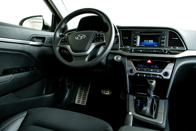 Hyundai claims this new chassis uses 53% high-tensile-strength steel, nearly double that of the old model, resulting in a 29.5% increase in torsional rigidity. Along with retuned dampers and springs (as well as what feels like more substantial suspension and subframe bushings), this results in a car that's more solid over bumps and ruts. While the old Elantra was soft and tended to wallow, this one possesses firmer body control, taking road imperfections in stride despite the rather large 17-inch wheels. The steering also seems a touch meatier than before, although this will be hard to quantify without a longer test drive.