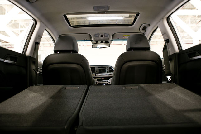 The interior design likewise follows the Sonata, with premium European lines and much better plastic finishes than on the old car. An extra 25mm of width is evident in the extra elbow room, and while legroom remains unchanged, it's still on the large side of the class. There is much more trunk space, though, and a larger pass-through makes for more flexible cargo-loading.