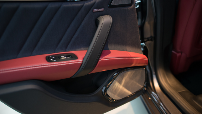 Look to the side and you’ll see that there are also Zegna touches on the door panels. Again, this part of the vehicle is covered in silk jersey from the luxury clothing brand. The lining of the roof and the sunshades are likewise covered in the same fabric. Whichever option you choose, you’ll perceive that the materials complement each other well.