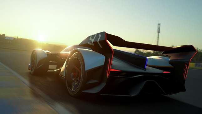 To throw us off the scent, the Gran Turismo car has plenty of madness on-board. Your avatar's driving position is futuristic enough to make even the McLaren F1 appear old-school. In the cockpit, the driver lies on their front, head almost in line with the front wheels, like Christopher Nolan’s Batman did during particularly gnarly chase sequences in the Tumbler. We're sure that's fine in a virtual first-corner pile-up. Definitely.