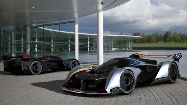 McLaren being McLaren, there's a full set of specs provided for what is in reality nothing more than a collection of pixels, code and wild imagination. Power is generated by an angrier version of the 720S's 4.0-liter biturbo V8, allied with front wheel-mounted 'pod motors.'