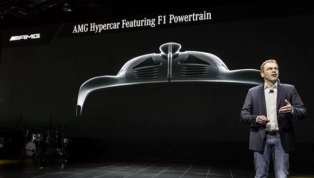 "To me, there is no sense in having a V8 or V12, it should be something more sophisticated regarding efficiency and driveability. That’s why we’re going to use the 1.6-liter V6, with the split turbine, with the electric motor on the crank, and the all-wheel drive application. Everything we learnt from the SLS e-drive will also feature on this car… when you talk about torque vectoring and four motors on each wheel, we learned a lot from that car, about how to tune the systems for the ultimate driving dynamics. Now we’re going to apply all of that to Project One."