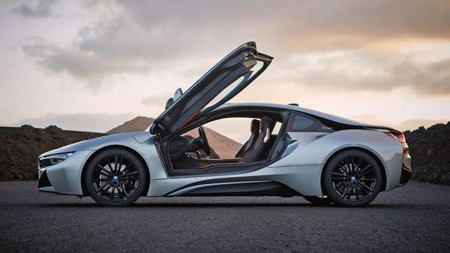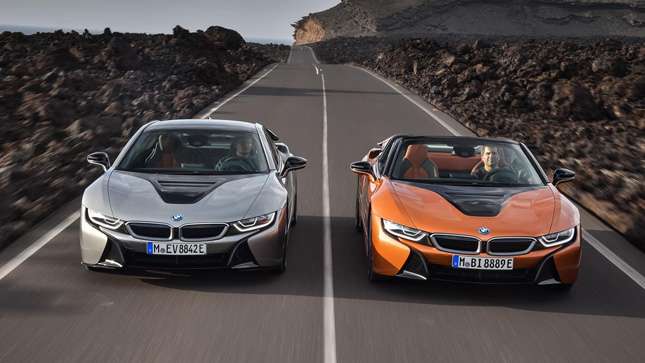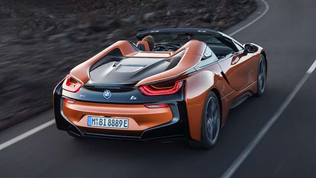It’s been revealed alongside an updated BMW i8 Coupe, whose mid-life facelift neatly arrives with the Roadster. The good news is it brings more of everything: Improved battery technology means more energy, so the motor now produces 143hp—up 12hp, taking the car’s total gasoline and electric output to 374hp. The electric-only range tops 48km now, too.
