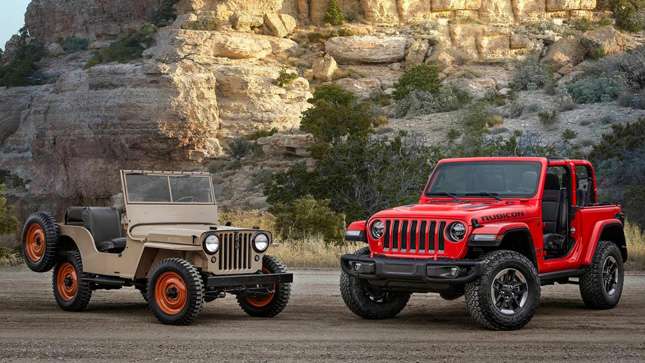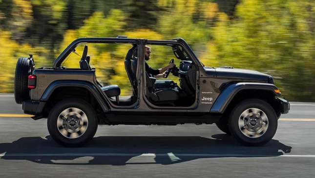 Your pick of two or four doors remains, while you can have a traditional hardtop or two types of open top: One that involves removing many body panels (dropping the weight even more), or a powered soft top. Jeep went there decades before the Range Rover Evoque cabrio, don’t forget. And here, you can even flip the windscreen down for more open-airiness.