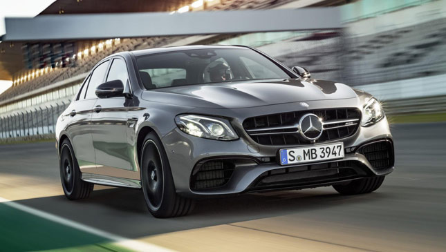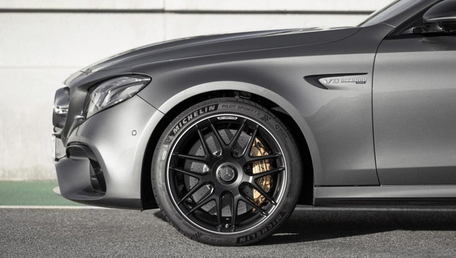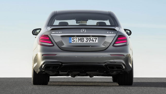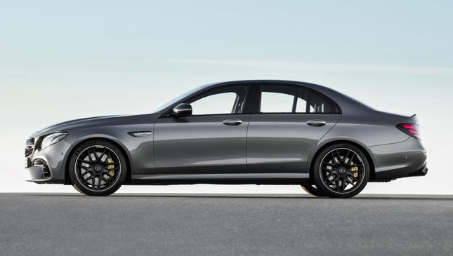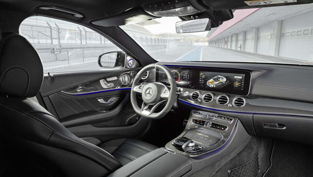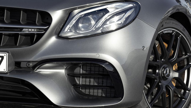 Identifying your 604hp supercar eater over an E220d is a completely redesigned front end with vertical black struts in the grille and flared nostrils. The front wheel arches are 17mm wider to accommodate wider rubber and scare small children, while the interior is adorned with leather, alcantara and carbon fiber, and Christmas-tree spec blue ambient lighting.