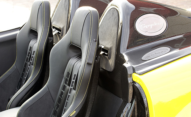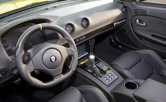 Helping to keep the Esperante Spyder GT’s weight down are its carbon-composite and aluminum body, and the extensive use of carbon fiber for the aero components, the panels and even the back of the leather seats.