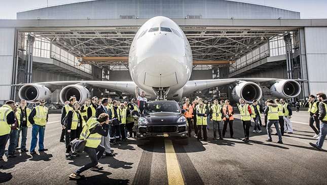 It’s impressive not only because the A380 is over 100 times as heavy as the Cayenne, but because the car in question was standard.