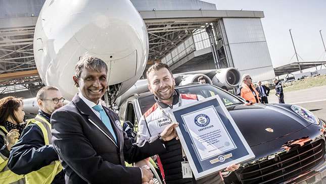 Pravin Patel was the adjudicator from Guinness World Records. "I’ve verified some amazing record attempts during my time," he said, "but watching a Porsche Cayenne tow one of the largest aircraft in the world definitely ranks as among the most spectacular."