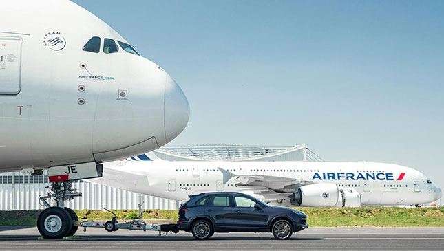 The Cayenne S Diesel pulled a 285-ton Air France Airbus A380, breaking the previous "heaviest aircraft pull by a production car" Guinness World Record by 115 tons. Wow.