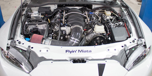 Flyin’ Miata says that this isn’t simply a case of Frankenstein getting his slimy hands on the car and turning it into a monster. According to its website, the V8-powered MX-5 is packed with a whole gamut of goodies straight from the factory—the Mazda factory, that is.
