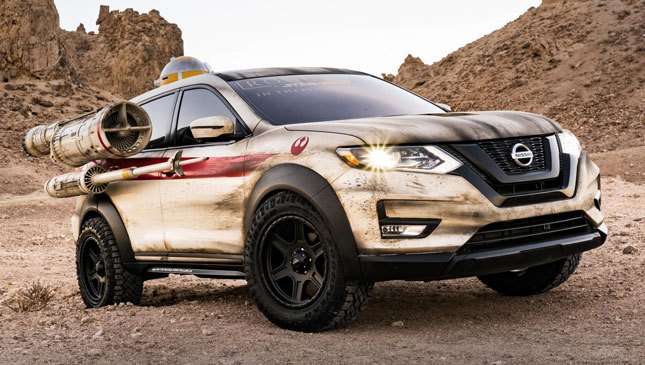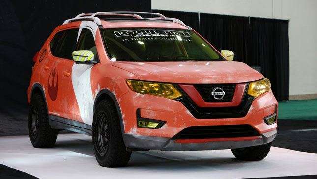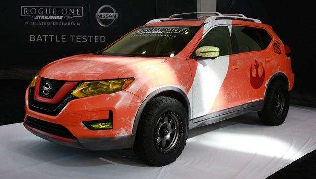 There’s another concept at the show too—a 2017 Nissan Rogue wrapped in special orange and white graphics and logos, inspired by an X-wing pilot’s suit.