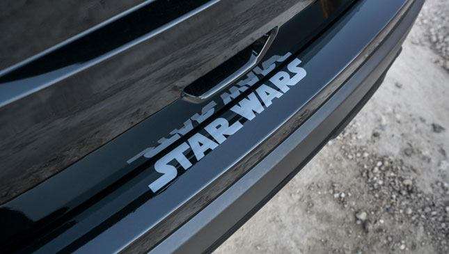 Of more interest however, is the car in the picture above. It’s a one-off custom concept featuring much Star Wars-spec paraphernalia. We’re talking thrusters, blasters, side mirror Rebel logo projectors, and even an astromech droid, all inspired by an X-wing fighter. Take that, dark side!
