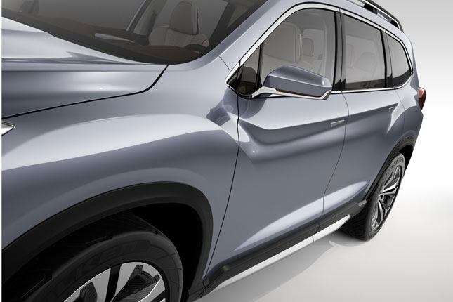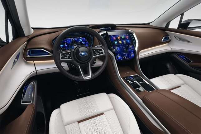 For one, its powered by an all-new turbocharged direct injection boxer engine. On the outside, it follows Subaru’s “Dynamic x Solid” design theme that includes powerful fender flares (which apparently represent Subaru’s all-wheel drive system), big 21-inch tires, plus a large grille. If you ask us, the latter looks reminiscent of the one on the current Ford Explorer.