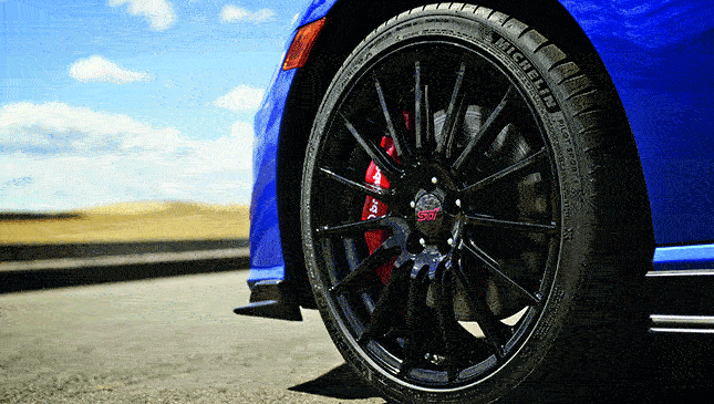 Not a turbo monster, is what a tS is. Joking aside, this version for the States gets STI-tuned front and rear Sachs dampers and coil springs, along with flexible V-braces in the engine compartment. To that we add draw stiffeners to the chassis and sub-frame said to improve steering response, along with those shiny, glossy, 18-inch lightweight STI wheels you can see above, mounted on Michelin Pilot Sport 4 tires.