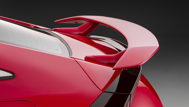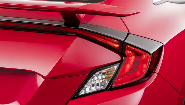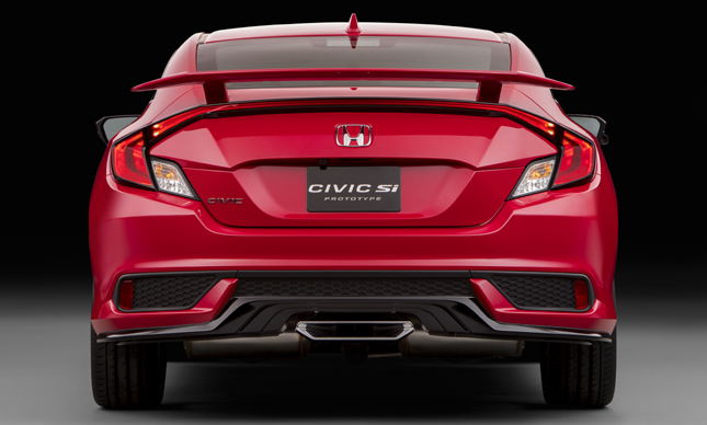 The prototype, which features the same aggressive looks, sleek lines and muscular front-end seen in current-gen Civics, is shown in a hot Rallye Red Pearl paint finish, and flaunts 19-inch 10-spoke forged aluminum alloy wheels wrapped in high-performance tires. What's more, the company has been generous enough to give the car the full Honda Factory Performance (HPF) treatment, courtesy of front and rear splitters, a cool rear spoiler and a center-mounted polygonal exhaust finisher.