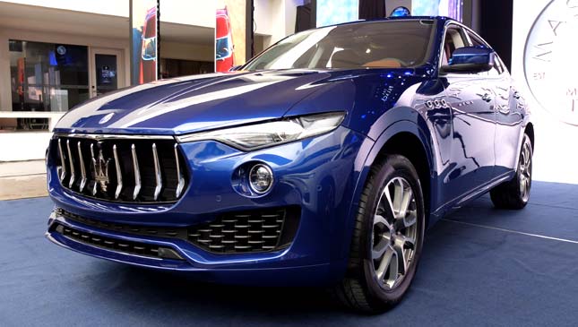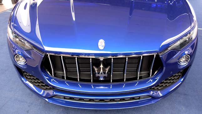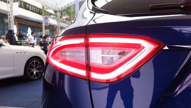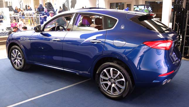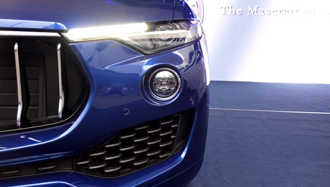 Two units of the Levante were revealed to us during the vehicle's introduction: one in white and the other in a stunning electric blue finish. The Levante certainly looks like the sportiest entry into the luxury SUV segment. Our attention was instantly drawn to an aggressive front end featuring the signature concave grille, and the Maserati trident emblem sandwiched between two sleek, swept-back bi-Xenon LED headlights. The feline-inspired silhouette suits it well, providing the SUV with a coupé-like demeanor further enhanced by frameless doors and a side profile line which runs the whole length of the vehicle.