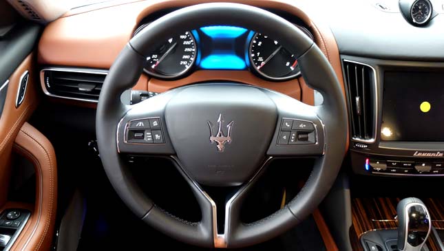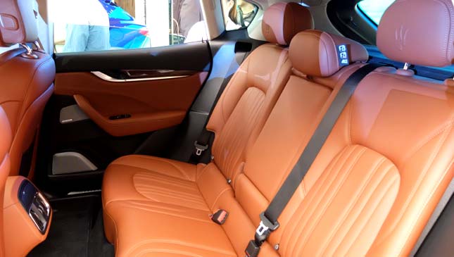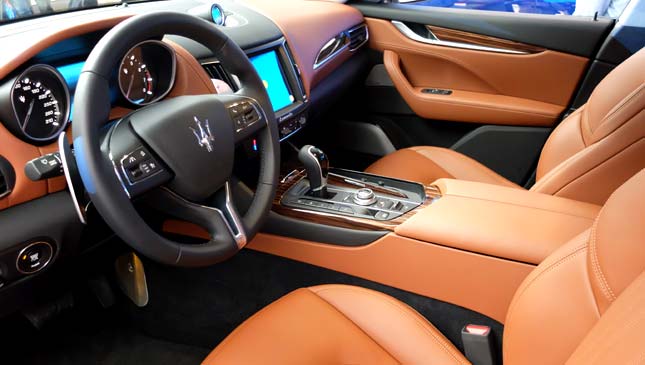 Inside, the Levante comes with leather seats, an 8.4-inch touchscreen mounted on the center console which also houses the rotary knob and drive modes, as well as an instrument panel similar to that of the Quattroporte. Folding split 40/60 rear seats allow for more luggage capacity than the standard 580L. Overall, premium materials and a sedan-inspired design provide the Levante cabin with a lounge-like atmosphere.