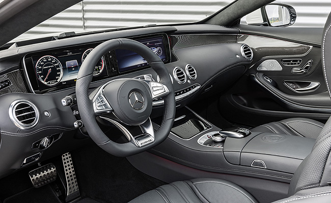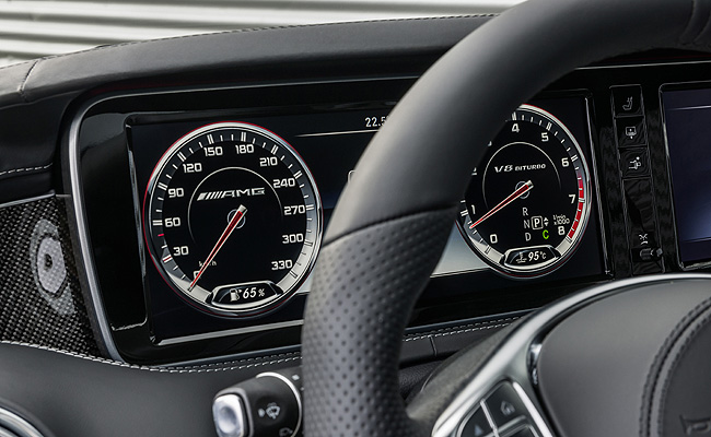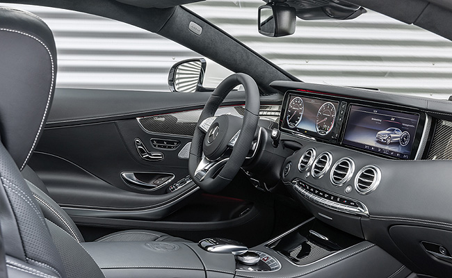 Powered by a 5.5-liter V8 AMG biturbo engine, it's the most powerful of the German carmaker's BlueDirect family of environment-friendly engines with a power output of 585hp and a maximum torque of 900Nm. Compared with the CL63 AMG, the S63 AMG Coupe is more powerful by 41hp and 100Nm, yet is more fuel-efficient with a mileage of 27.9mpg (11.862km/L), making it "the most fuel-efficient model in its competitive segment." Paired with the engine is a multi-clutch SpeedShift seven-speed sports transmission.