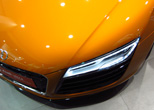 Lastly, the chrome strip wrapped around the top of the body, the distinctive side indicator element, and the black band framing the lower edge of the car follow the brand\'s traditional styling elements.