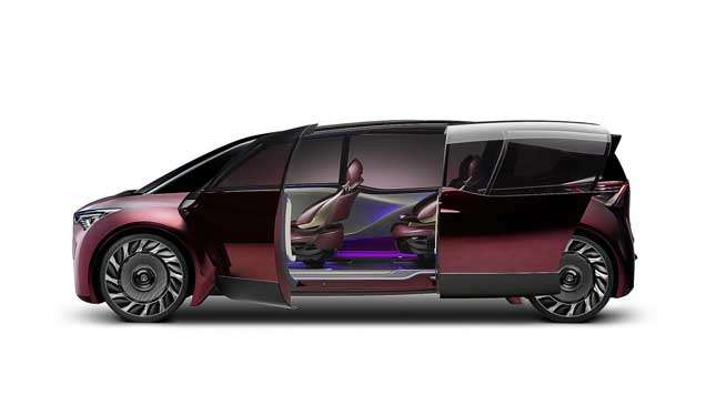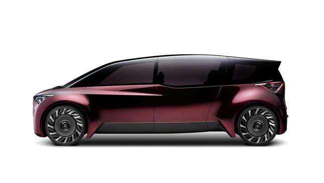 Toyota makes a fuel-cell car now—the Mirai—but this one is quite different. Putting the motors in the wheels has freed up a lot of interior space, and Toyota dubs the Fine-Comfort Ride as a “new form of premium saloon.” The cabin is wider than usual where the front rows of passengers sit, while narrowing to the rear to help the body carve through the air.