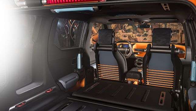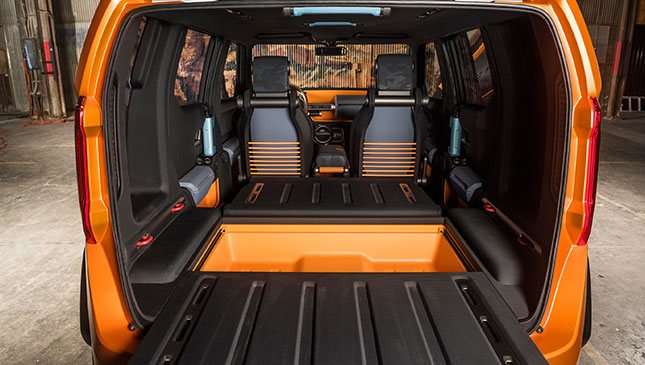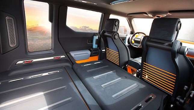 One of our favorite parts in all this is the vehicle's versatile 'multi-tool' cabin. The interior is divided into three areas: the clean zone (front passengers) features rugged mats and wood flooring, a wet zone features all-weather mats, and a cargo zone that has topside racks and a floor that slides out. Also of note is how designers went for tactile grips, handles and controls, further accentuating the car's no-nonsense tendencies.