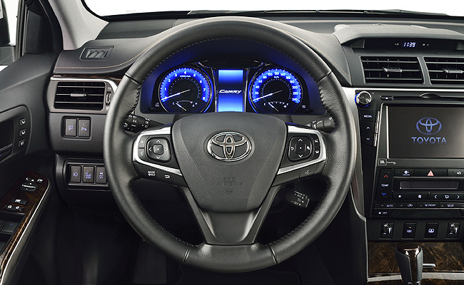 The Camry's driving dynamics have also been enhanced with the adoption of a new front differential, improving its standing-start acceleration and high-speed stability. In addition, both the suspension and the electric power steering system have supposedly been fine-tuned "for greater ride comfort and steering feel." The midsize sedan also boasts an expanded range of active and passive safety features such as blind spot monitor, rear cross traffic alert, and auto high-beam technology.