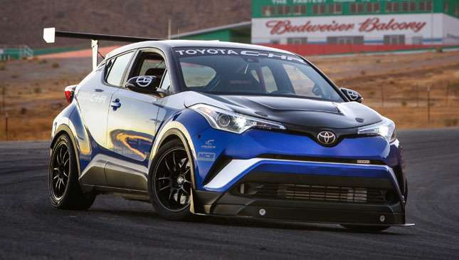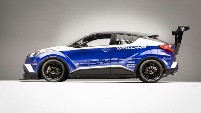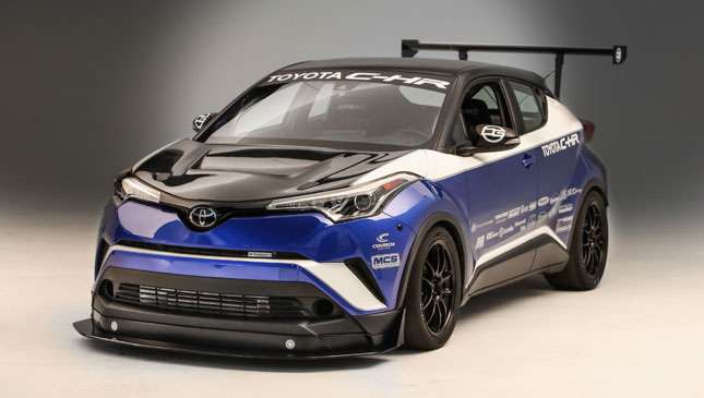 First up, the popular C-HR got a serious performance boost courtesy of DG-Spec and Dan Gardner. A full turbocharged engine and new transmission were added along with an aero package, custom racing suspension, and a roll cage. Add a huge spoiler and bumper lip to the mix, and you get a badass looking package that somehow manages to still be a bit subtle at the same time.