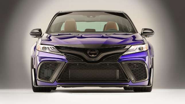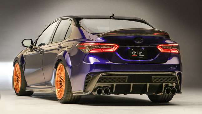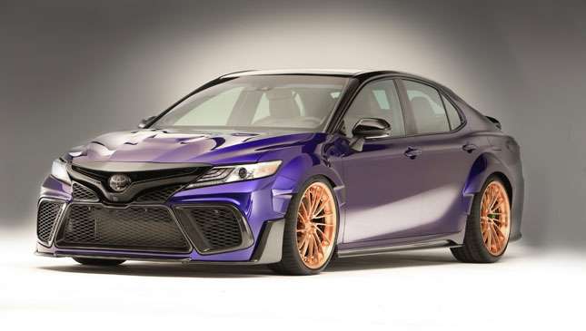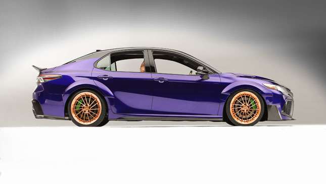 The all-new Camry, meanwhile, has been customized by Real Time Automotive's Rick Leos and NASCAR racing analyst Rutledge Wood. Their design sees the executive sedan sporting a futuristic look, thanks to one-off panels made from 3D printers. The purple paint and gold wheels are a nice touch, too.