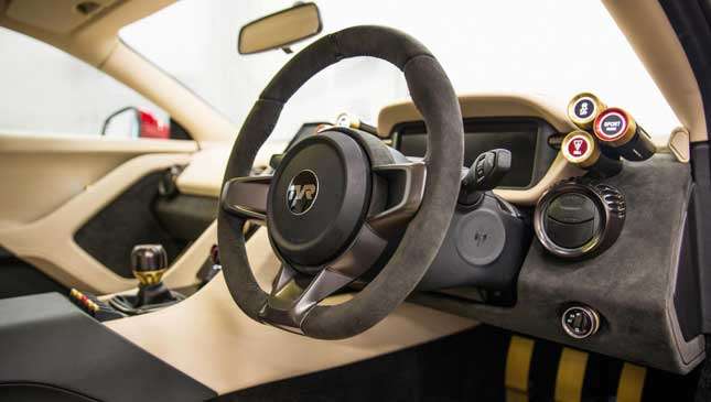 The suspension uses double wishbones at either end, with adjustable coilover dampers and concentric springs. The 21st century further intrudes with the TVR’s steering: It’s fully electric. The braking system uses six-piston aluminum calipers and two-piece 370mm diameter ventilated discs upfront, four-piston ally calipers and two-piece 350mm vented discs at the rear.