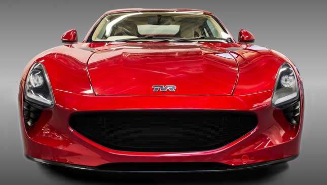 In many other ways, this stunning new car—side-exit exhausts, sculpted front wheel arches, and swoopy body—stays true to TVR’s homespun, old-school recipe. It packs a trusty atmospheric 5.0-liter quad-cam V8, the unit usually seen in Ford’s Mustang, but thoroughly overhauled for duty here by Cosworth to deliver more power and torque. It’s dry sumped to lower the center of gravity, and has 50/50 weight distribution.