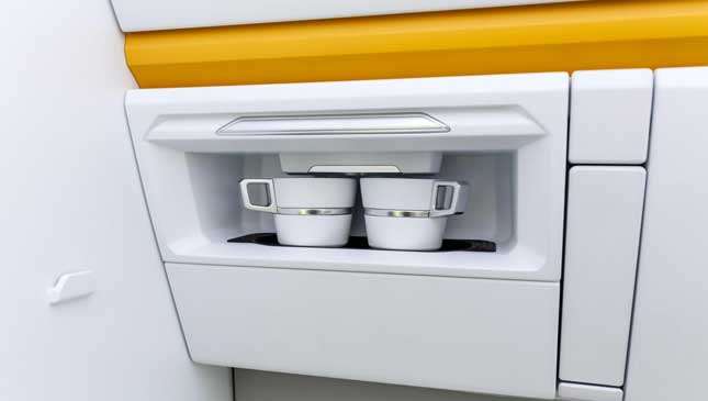 There’s also a freezer, a gas cooker, and a dining table with seating for four. A magnetic spice rack. Built-in chopping board holders and drawers for the cutlery. The kitchen is so big, in fact, that VW has been able to fit a pull-out wet room into the space.