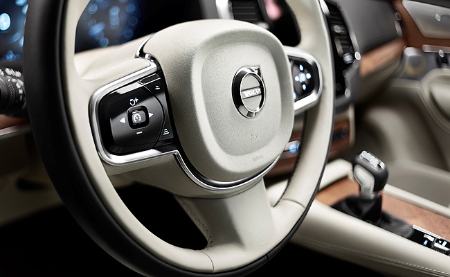 Inside, the most striking feature of the all-new XC90 is its tablet-like touchscreen control console, which is the heart of an all-new in-car control system, creating an interior that is "modern, spacious and uncluttered." Other luxurious accoutrements that can be found in the vehicle are soft-touch leather and handcrafted wood, as well as a gear lever that's made of crystal glass by famed Swedish glassmaker Orrefors.