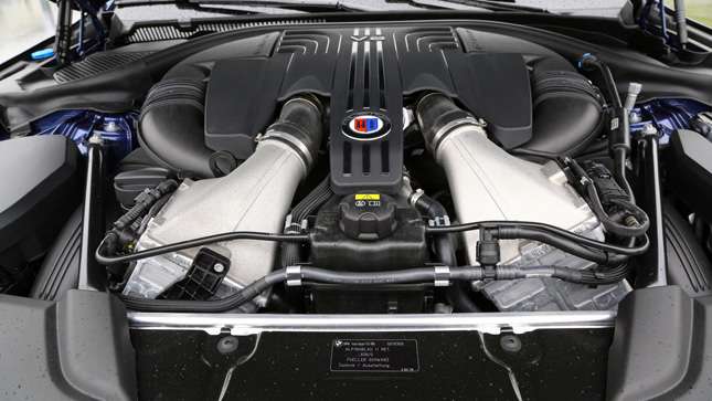 Small wonder too, when you take a nose through the specs and discover Alpina’s pulled 600hp and 799Nm from BMW’s 4.4-liter bi-turbo V8, dealt with by a (brave) eight-speed automatic gearbox and a (heroic) all-wheel drive system complete with rear-wheel steering. Which ought to make those 200mph autobahn lane changes feel no more strenuous than a relaxing bubble bath.
