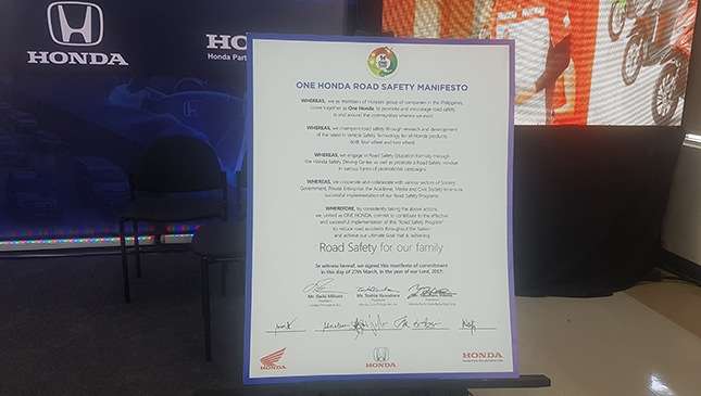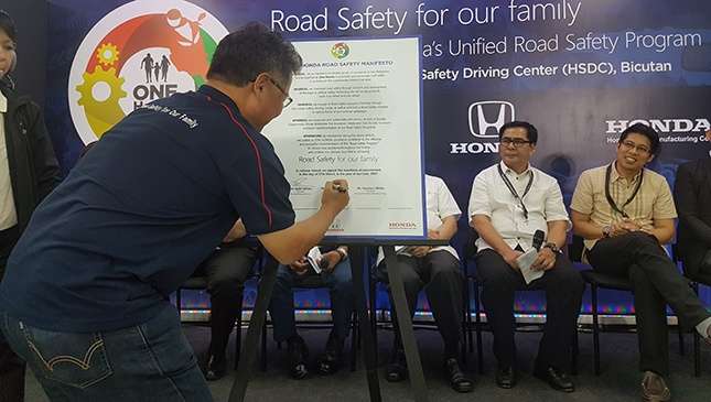 As a gesture of their sincerity, the leadership of three Honda companies led the signing of a manifesto of unity and cooperation among the various sectors of society, including government agencies, private entities, schools, media, and civil society groups in ensuring the success of the program.