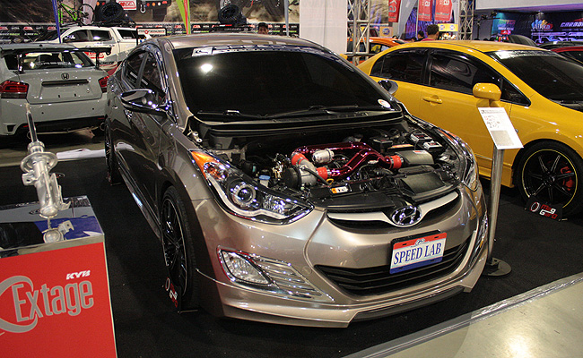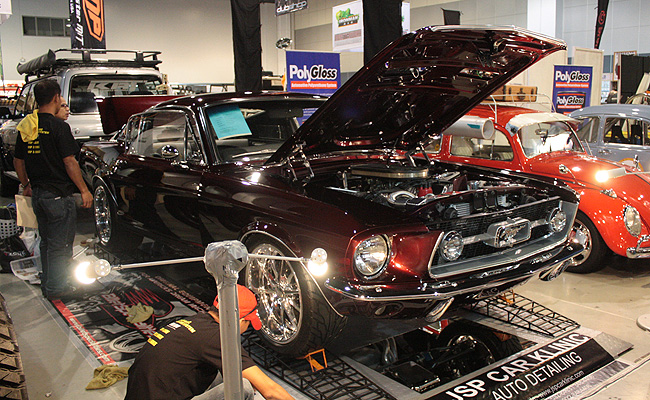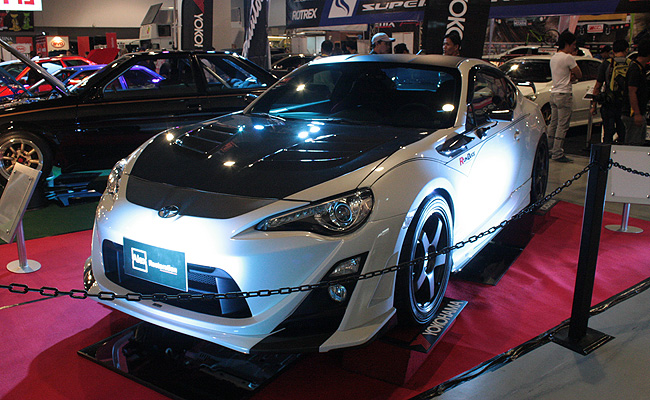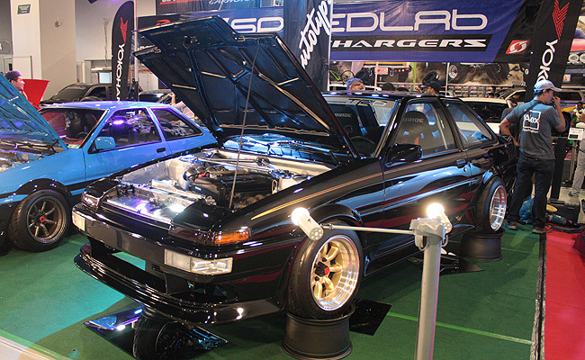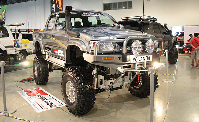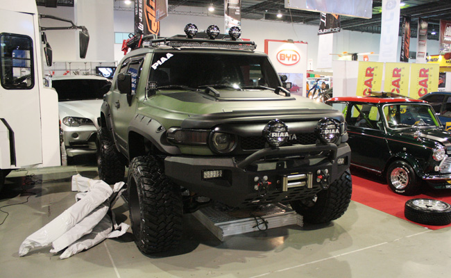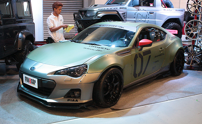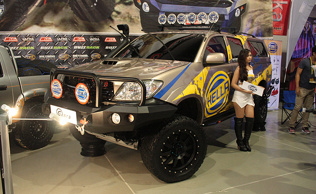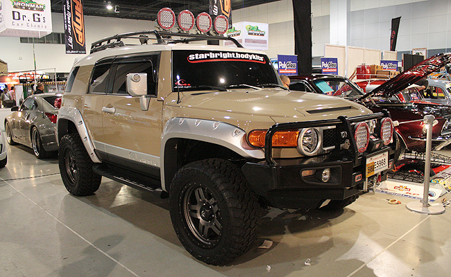 We visited the show yesterday and noticed a few things. If the Toyota 86 was the tuners' car of choice the past couple of years, the Toyota FJ Cruiser seems to be the favorite this year. Also, there are noticeably fewer cars occupying the floor, so there's less jostling among visitors who want to get a good view of the cars and the babes.