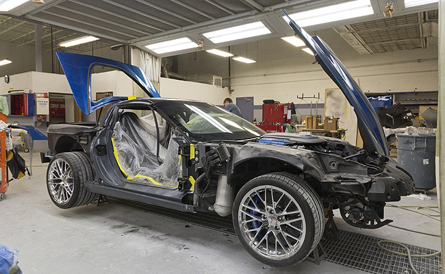 The car is a 2009 Corvette ZR1 prototype, and is one of just three damaged Corvettes General Motors has promised to restore back to their original condition.