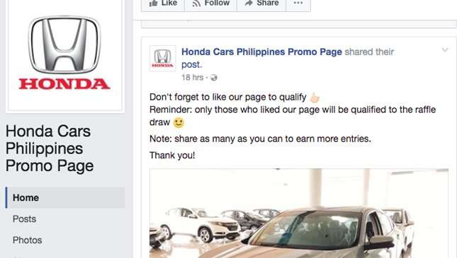It's an understatement to say we were wary of these 'promos' from the start. The shoddy grammar might already be a giveaway, but we've also verified that the promos we encountered aren't real. Neither Toyota Motor Philippines nor Honda Cars Philippines have such promotions. For example, the latter confirmed that the page you see above is a hoax.