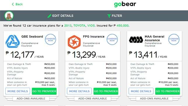GoBear Philippines country director Rommel Torres says the mission of the service is to help provide consumers with control and assurance over their financial decisions. "We strengthen our commitment to give the power of choice to Filipinos through the launch of our newest financial service--car insurance comparison," he said. "Users can now get the best auto insurance policy that suits their needs and gives the best value for their money."