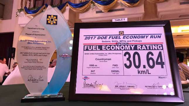 British United Automobiles, the country's exclusive distributor of Mini vehicles, has plenty of reasons to celebrate this holiday season. The company joined the Department of Energy's (DOE) most recent fuel economy run, and the Mini Countryman managed to get second place among the diesel entries with an impressive 30.64km/L.