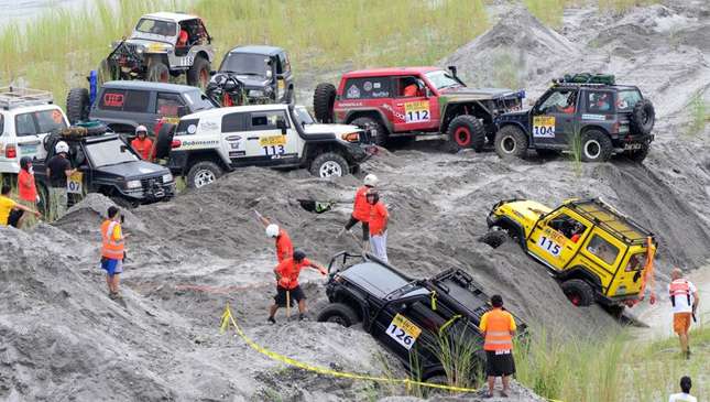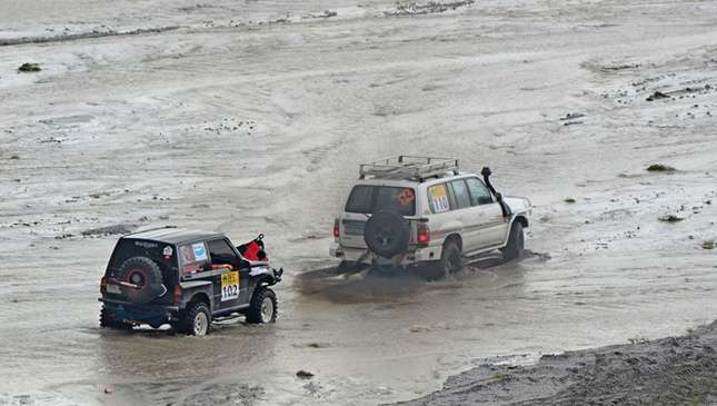 There are "special stages" in which competitors have an opportunity to gain points. These stages usually involve scenarios such as rescuing a stuck 4WD vehicle. What makes these driving conditions so difficult is that the event is held during the monsoon season, when the terrain is muddiest and the water level is highest. Sometimes, it's so bad that vehicles need to be extricated by manually digging them out and using heavy recovery equipment.