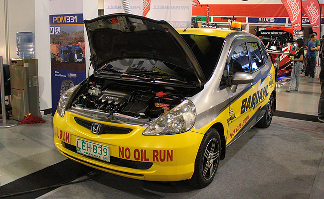 That's right: Since the opening of the show last Thursday (November 20), the Jazz has been running without any engine oil. Instead, its internals are said to have been coated with Bardahl's B1 Engine Treatment. The additive supposedly works by reducing engine friction and wear through the brand's proprietary "polar attraction formula" which supposedly "clings to metal, forming a strong molecular film."