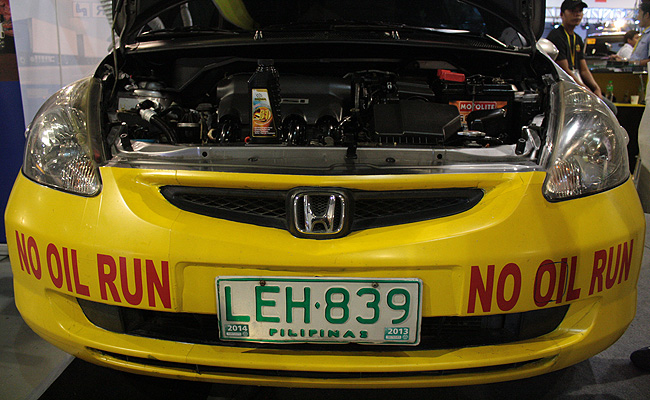 If you're planning to drop by the 2014 Manila Auto Salon this weekend, we suggest you drop by Bardahl Philippines' booth and check out the Honda Jazz that's on display there. Apparently, its engine runs during the four-day event without any engine oil.