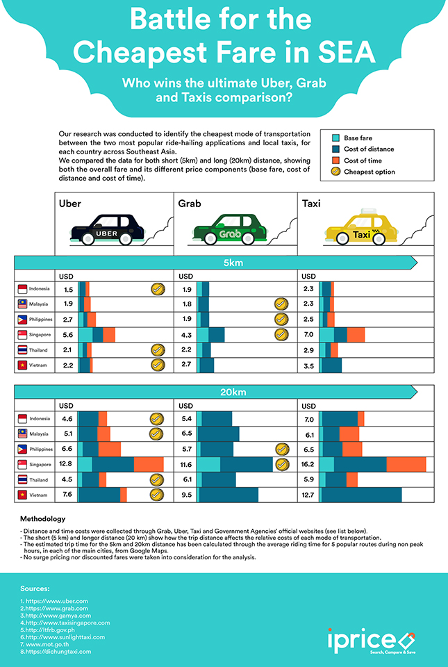 IPrice recently conducted a study with the mission of determining which of the two ride-hailing apps is easier on the wallet. The company compared data gathered from several major cities within Southeast Asia and analyzed info for both short and long distance travel.